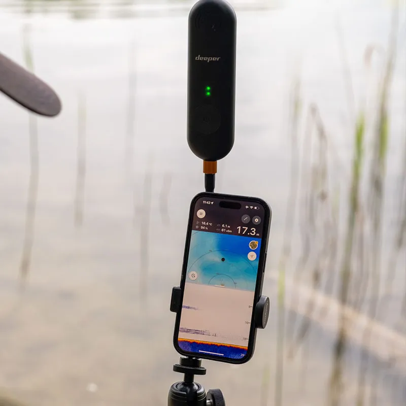 Verbessere beim Angeln mit dem Futterboot die Verbindung auf langen Distanzen zwischen deinem Smartphone und dem Sonar. Der Deeper Range Extender ist ein offiziell zertifiziertes, wasserdichtes Gerät, das sich leicht einrichten lässt. Im Lieferumfang ist auch eine Smartphone-Halterung enthalten, die auf die meisten Handygrößen passt.