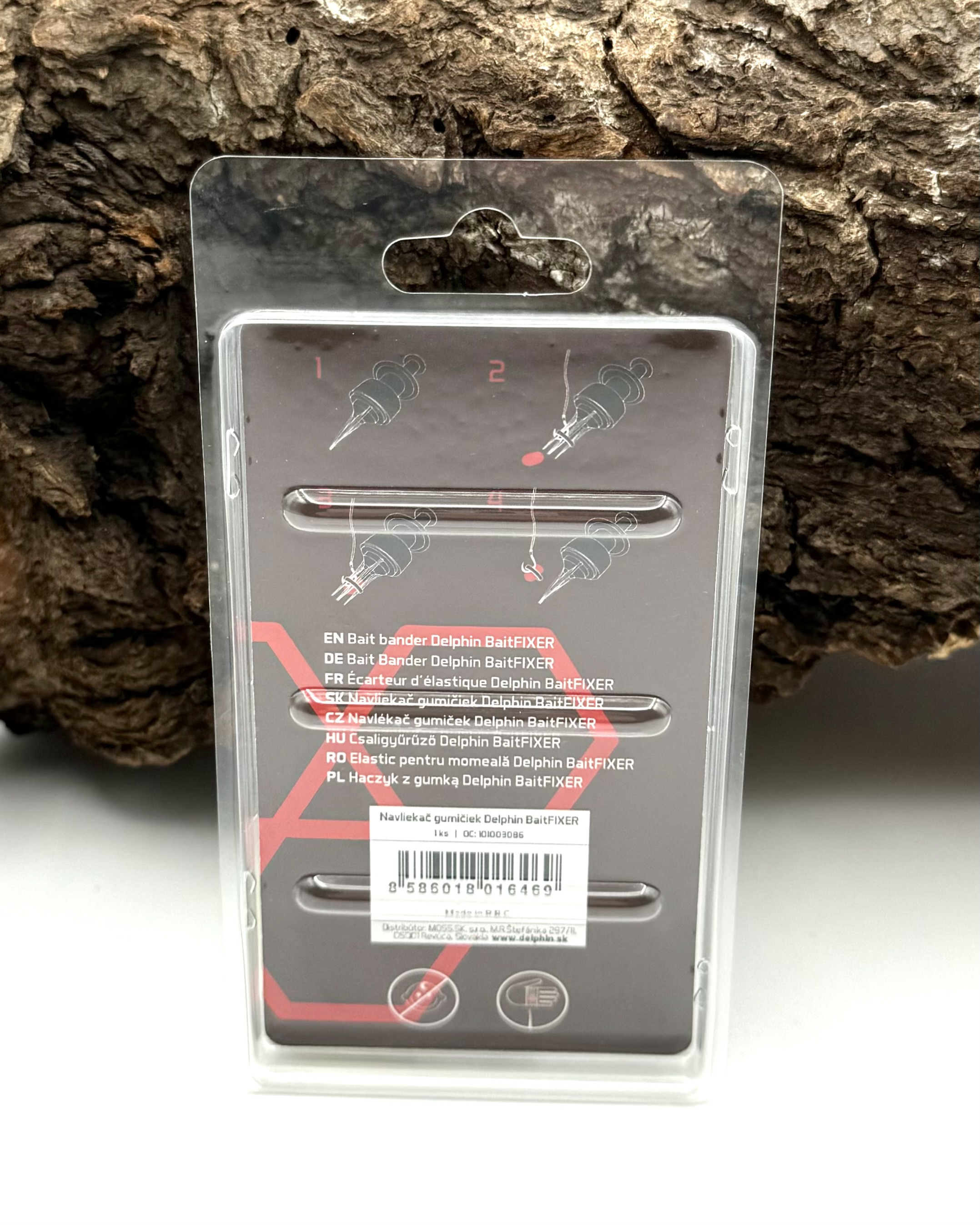 Ein Hilfsmittel, das das Aufstellen von Ködern auf dem BaitFIX-Gummiband viel einfacher und schneller macht. Die vier Backen, mit denen das Gummiband gedehnt wird, sind aus Metall, um die Schäden bei dem wiederholten Gebrauch zu minimieren. Die Anwendung ist sehr einfach. Fädeln Sie die Backen einfach durch die größere Öffnung des Gummibands. Dann öffnen Sie sie durch das Drücken des Öffners im oberen Teil. Sie befestigen den Köder an den Backen, fixieren ihn am Gummiband und ziehen ihn dann vorsichtig aus den Backen.