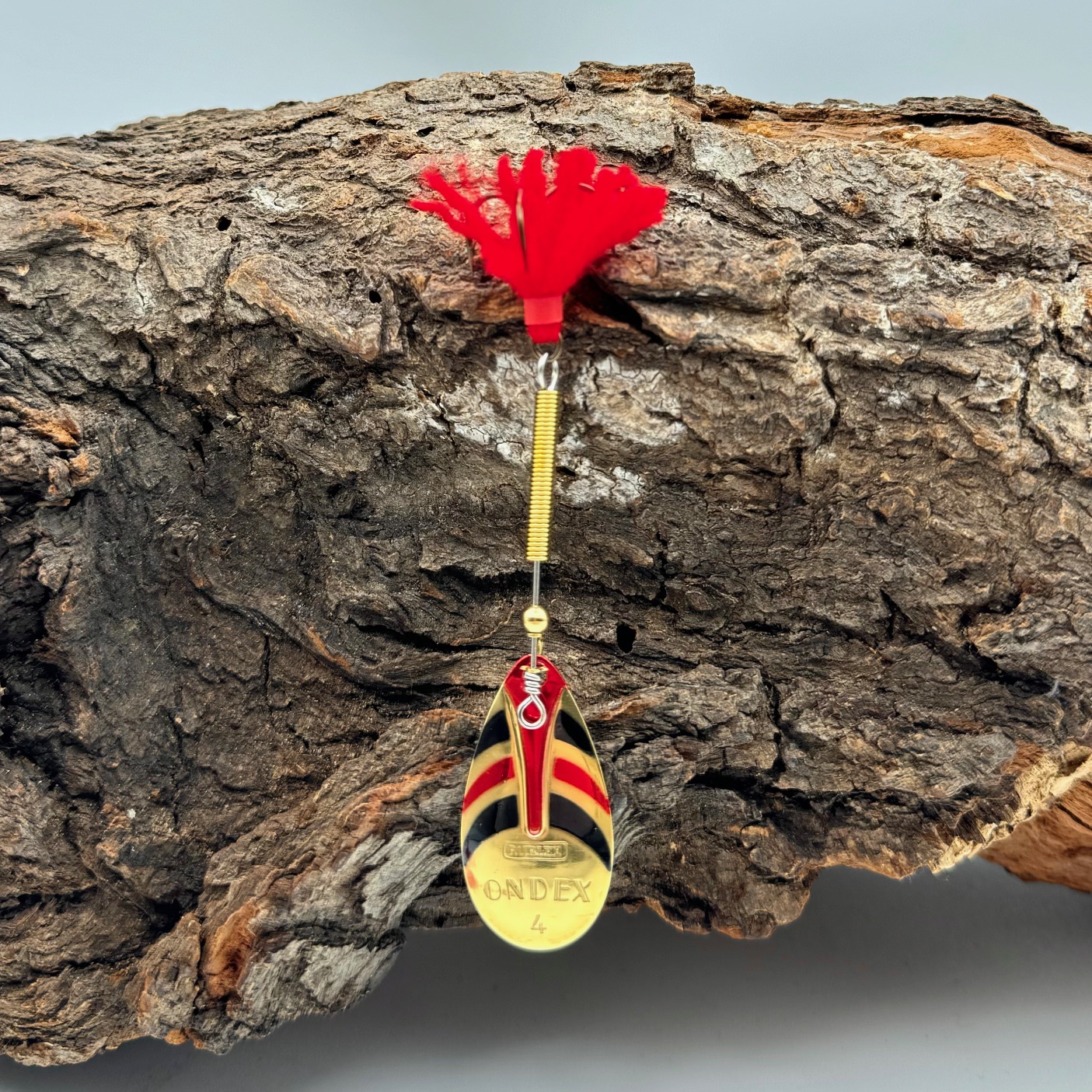 Der Rublex Ondex ist perfekt für flache Gewässerabschnitte und das Angeln nahe der Oberfläche. Das Spinnerblatt rotiert sehr leicht und erzeugt eine perfekte Drehung, selbst bei sehr langsamem Einholen. Die hochwertigen VMC Drillinge wurden durch das rote Puschel "getunt" und der Reiz wurde so erhöht. Der rote Federbusch macht diesen Spinner zu einem exzellenten Raubfischköder.