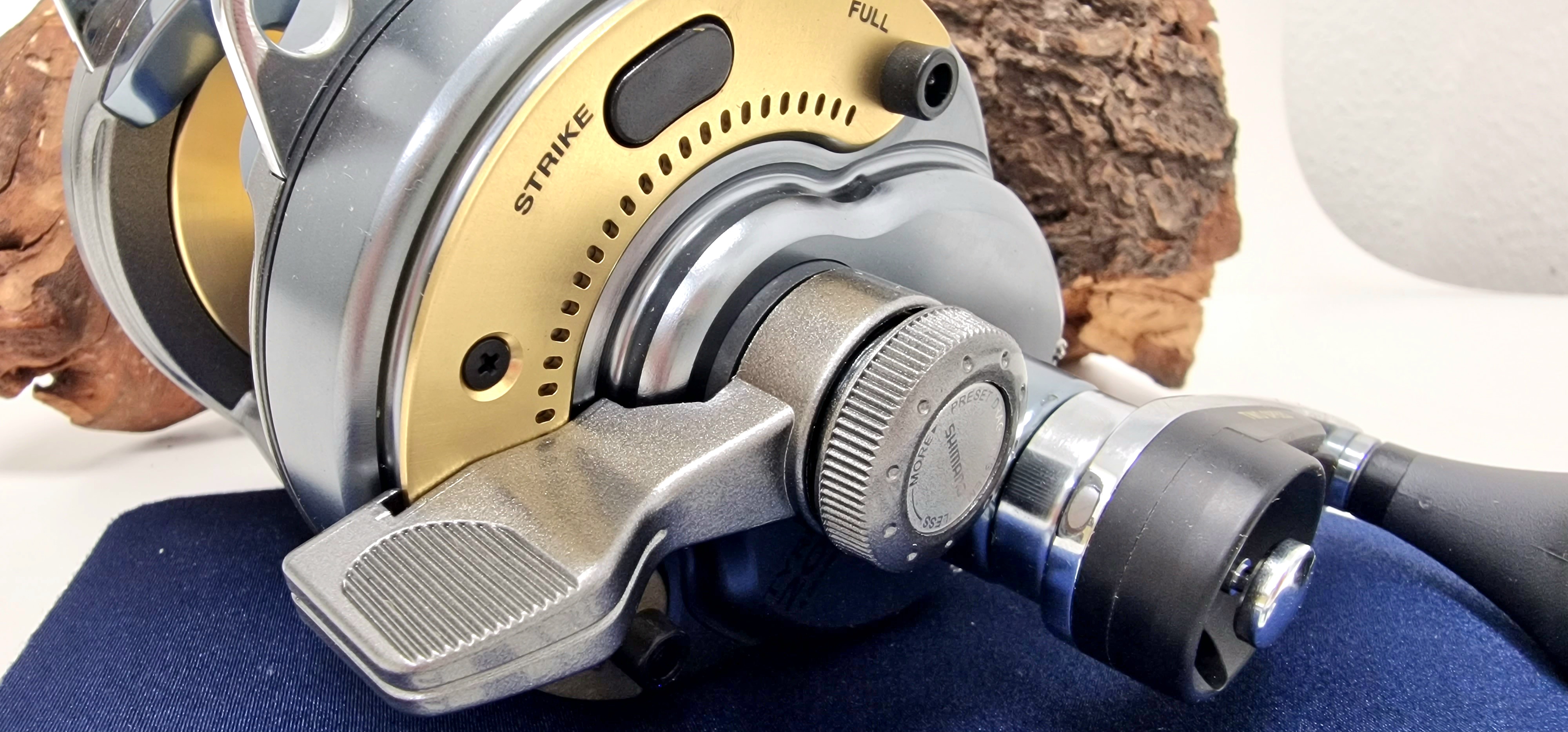 Die Tyrnos und die Tyrnos II (2-Gang) gehören zu Shimano`s schnellsten Multirollen mit Lever Drag. Extra große Gänge und eine verlängerte Kurbel sorgen für ein höheres Drehmoment. Für größere Variationsmöglichkeiten sind die größeren Modelle auch in einer 2-Gang Ausführung (II) erhältlich, die über eine beeindruckende Kurbelpower verfügt.$ Die größeren 2-Speed Tyrnos (II) Modelle sind die perfekten Rollen, wenn man in tiefen Gewässern auf besonders große Fische angeln möchte. In ihrer schnellsten Übersetzung können sie Bleie mit bis zu 115cm pro Kurbelumdrehung vom Grund hochkurbeln und mit einem einfachen Knopfdruck lässt sich die Kurbelkraft erhöhen, so dass sich große Conger oder sogar Haie bändigen lassen.