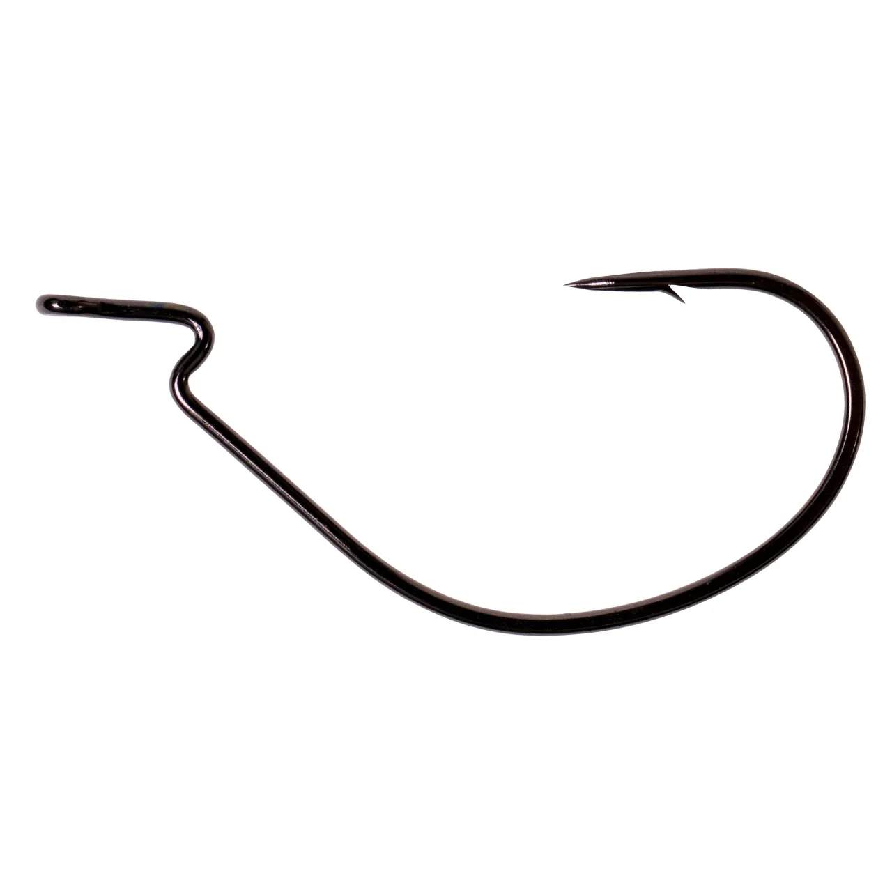 Dieser Offset Haken hat im Vergleich zu vielen anderen auf dem Markt erhältlichen Modellen den Vorteil, dass die Spitze in einer Flucht mit dem Öhr verläuft. Dadurch kannst Du die Hakenspitze im Schlitz des jeweiligen Gummiköders verstecken und hast weniger Probleme mit Hängern.