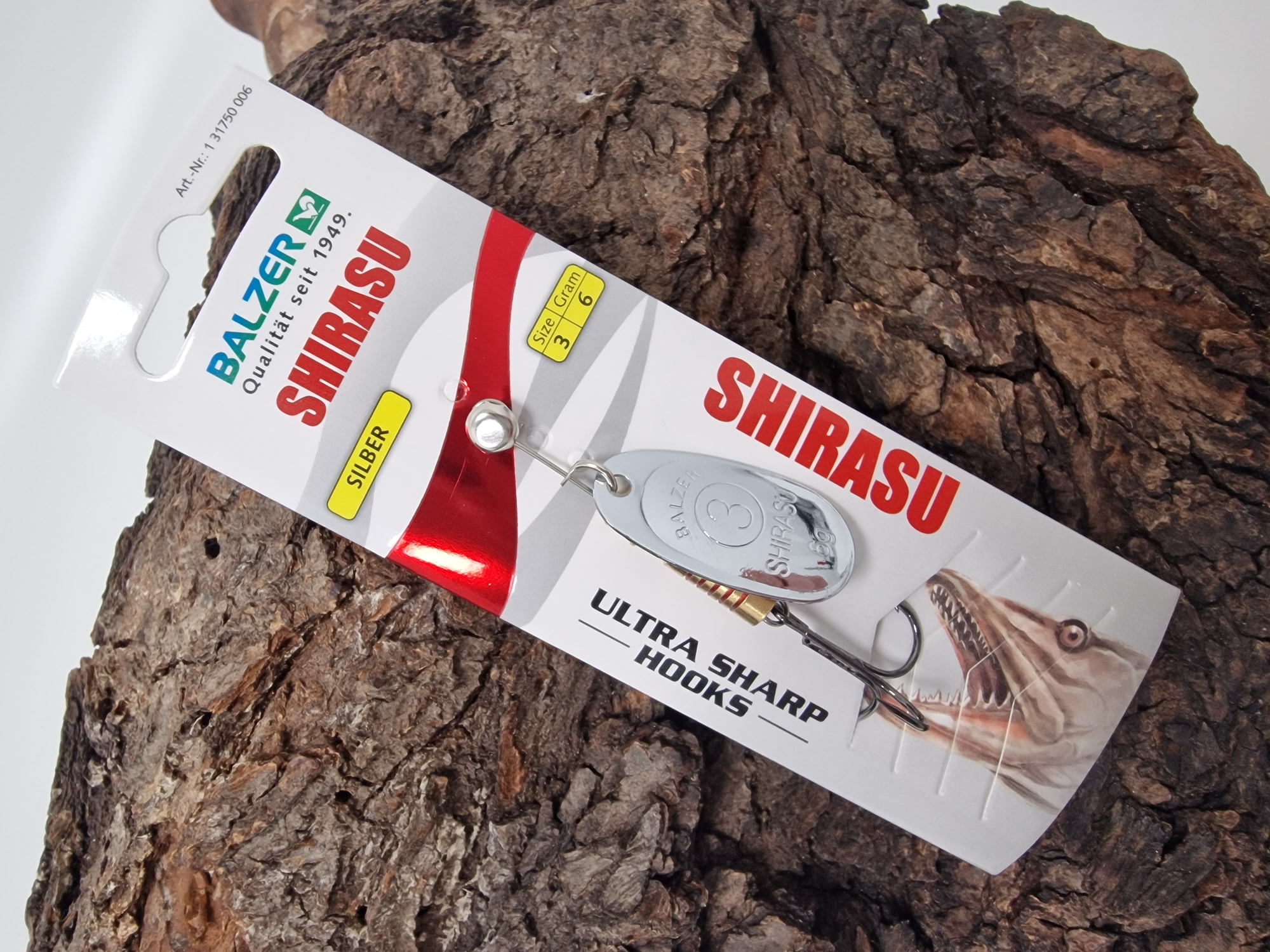 Erstklassige Spinner mit Körpern und Spinnerblättern aus hochwertigem Messing. Schon beim langsamsten Zug fängt das Blatt an zu rotieren. Der hochwertige 3D Laser Druck auf den Spinnerblättern erzeugt fantastische Reflexe. Mega scharfe Drillinge! Gr. 3 6g